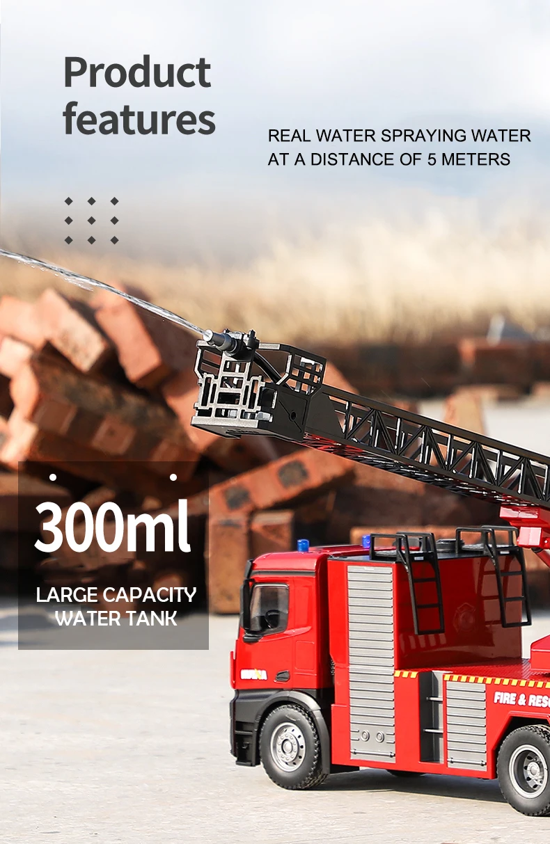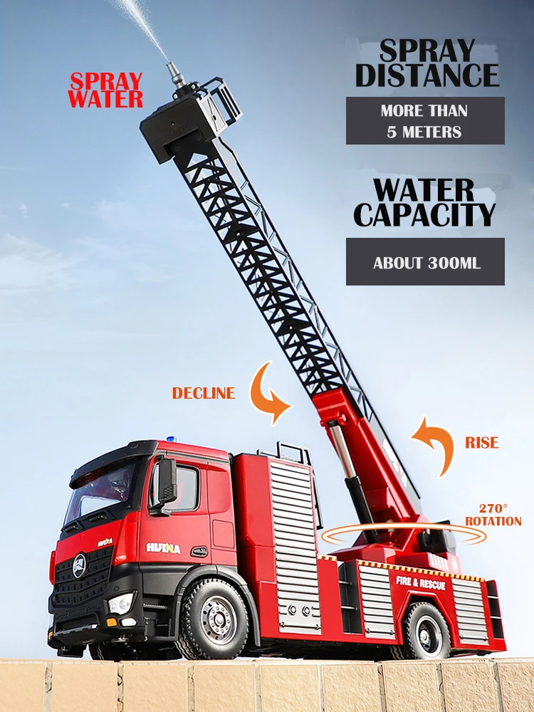 US Stock 1561 HUINA 1/14 RC Firefighter Truck RTR RC Fire Truck Toy Sprayable Scaling Ladder Light Sound RC Car Outdoor Toy