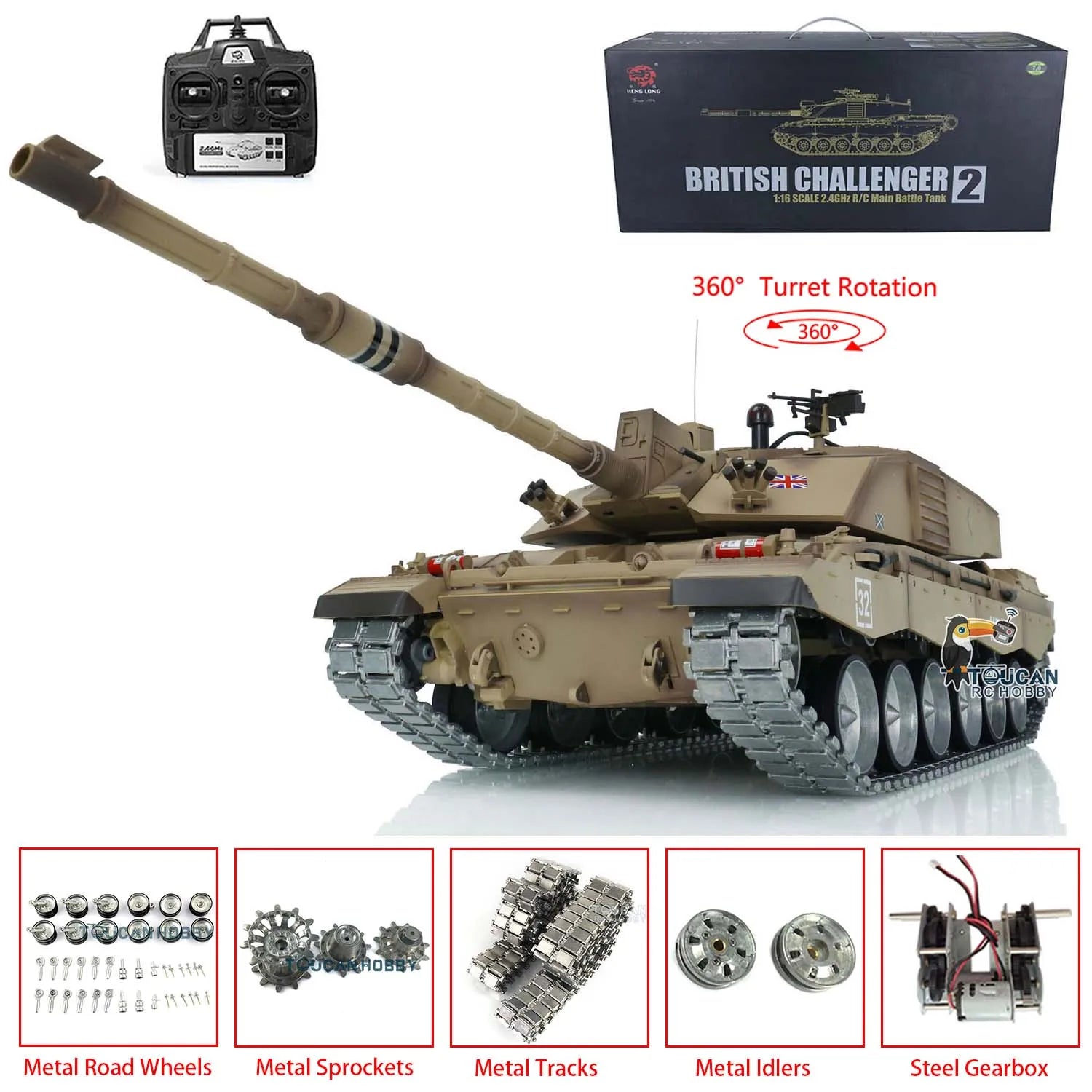 US Stock Heng Long 1/16 7.0 Customized Challenger II RC Tank 360° Turret Metal Tracks British Main Battle Tank 3908 Panzer Toy