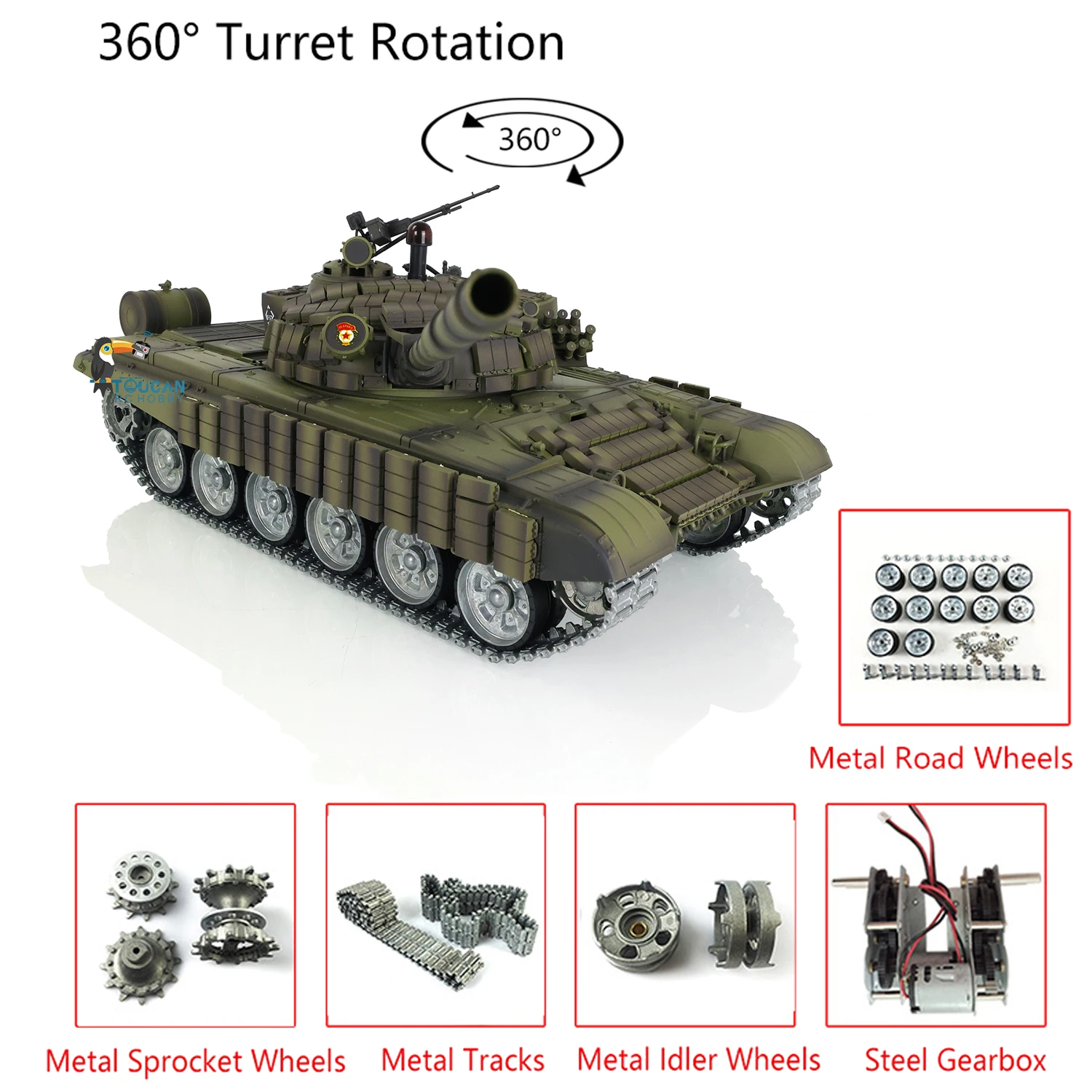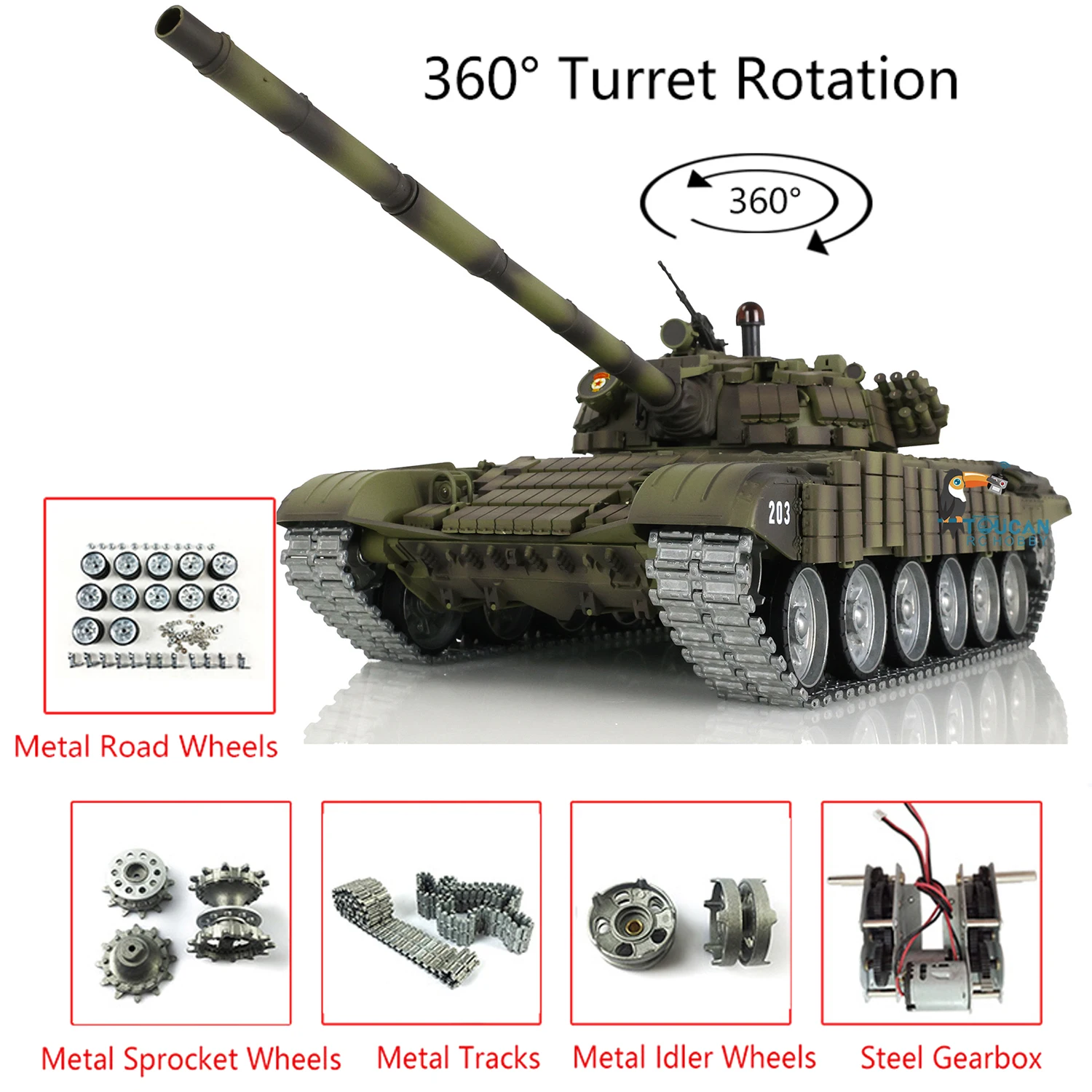 US Stock Heng Long 1/16 RTR T72 RC Battle Tank 7.0 Mainboard Tracked Car Metal Tracks Strong Motor Long 3939 Panzer TH20574