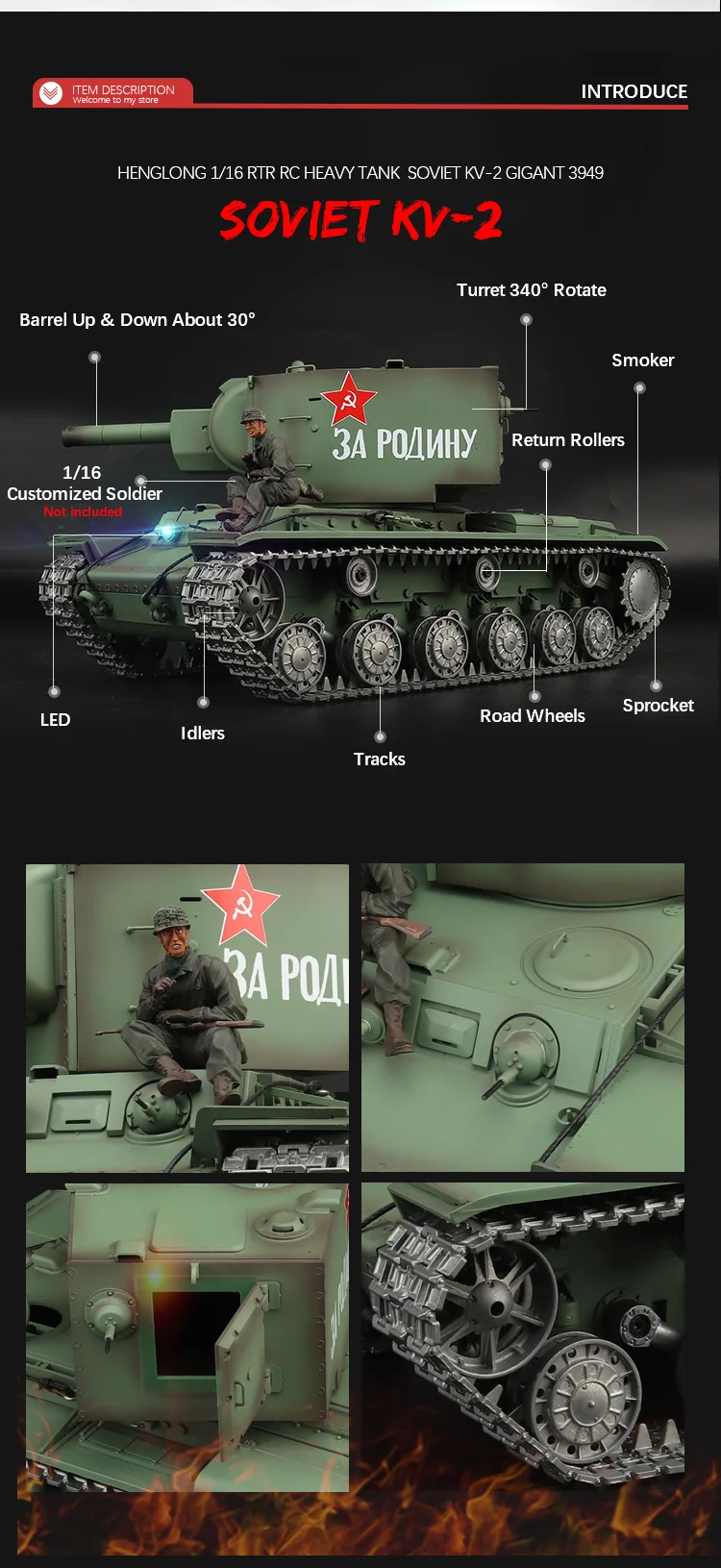 US Stock HENG LONG 3949 1/16 TK7.0 Soviet KV-2 RC Tank Gigant IR Battle BB Airsoft Smoke Barrel Recoil Model Toys Christmas Gift