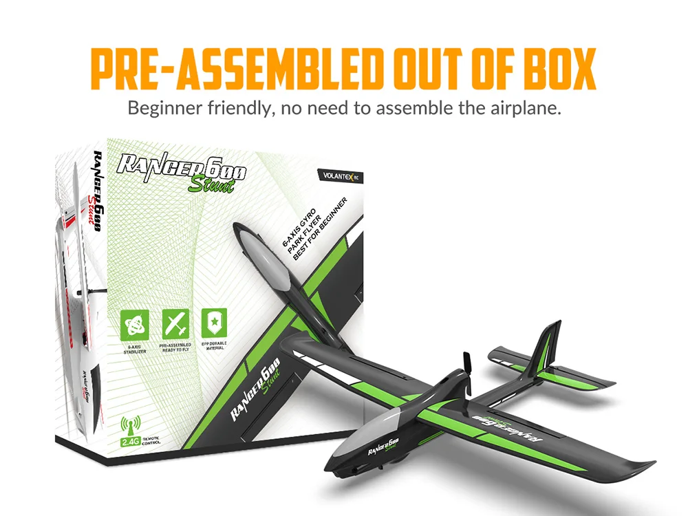 - Pre-assembled out of the box, no need to assemble the airplane.