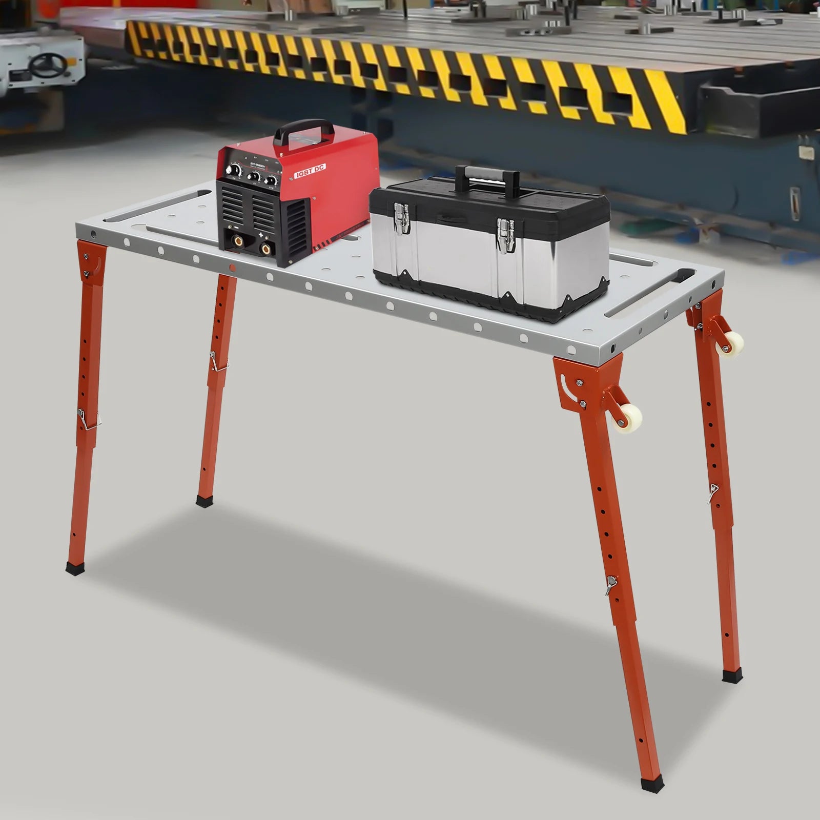 Welding Table with Adjustable Height, 2mm Thick Steel Top, 1000 lbs Capacity, Foldable Design with Casters, Easy to Clean and St