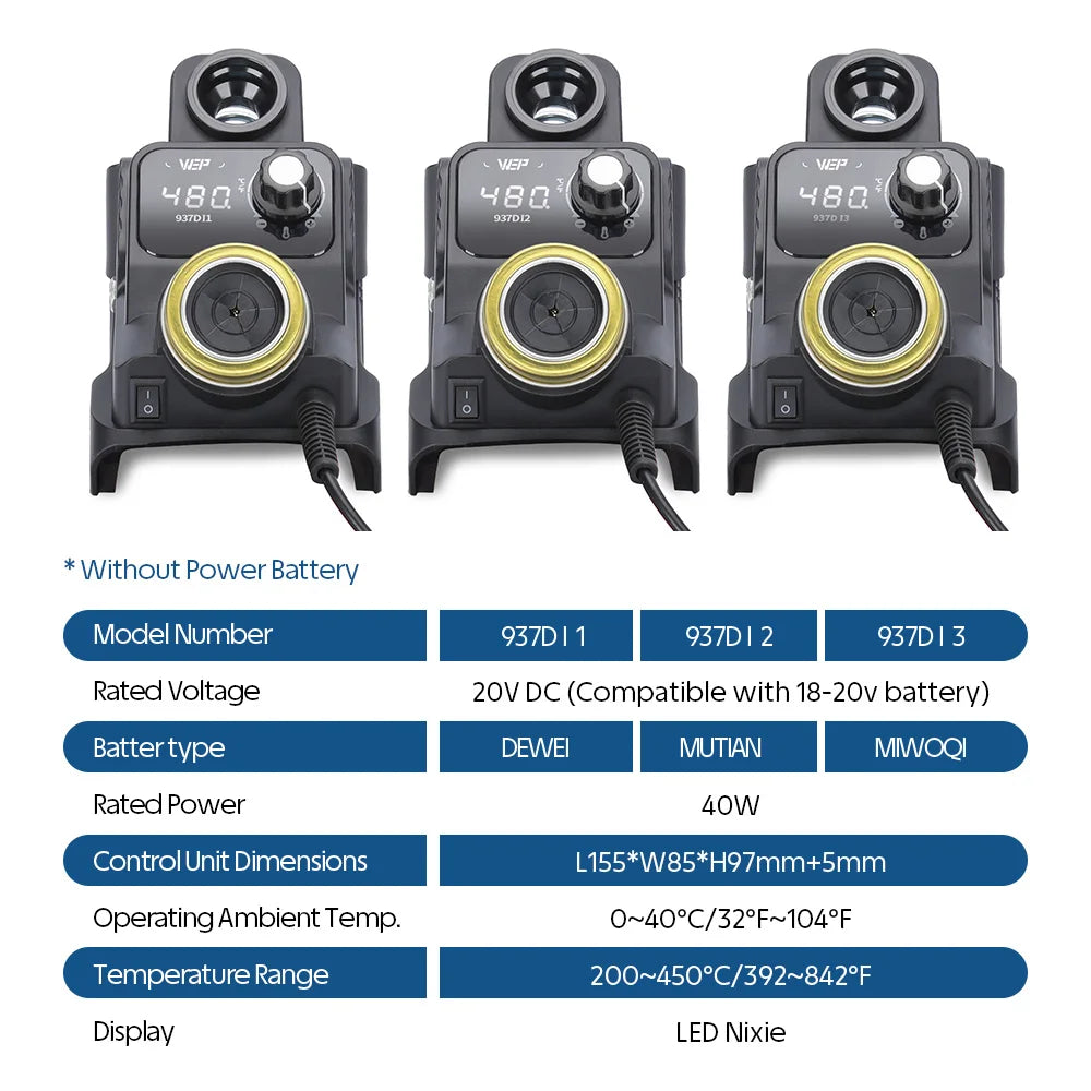 WEP 937D-I Portable Soldering Station Electric Cordless Solder Iron Kit Fast Heating For Milwaukee Battery 18/20V