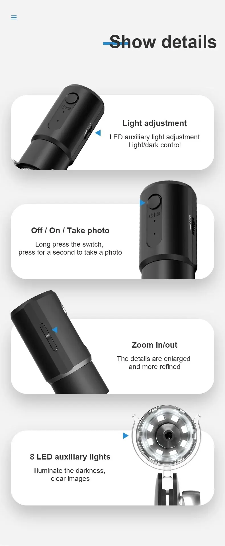 Adjustable 0x-1000x focus, making single-hand operation more convenient.