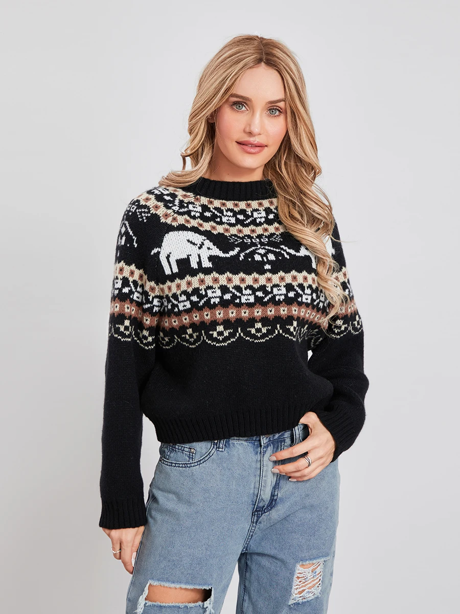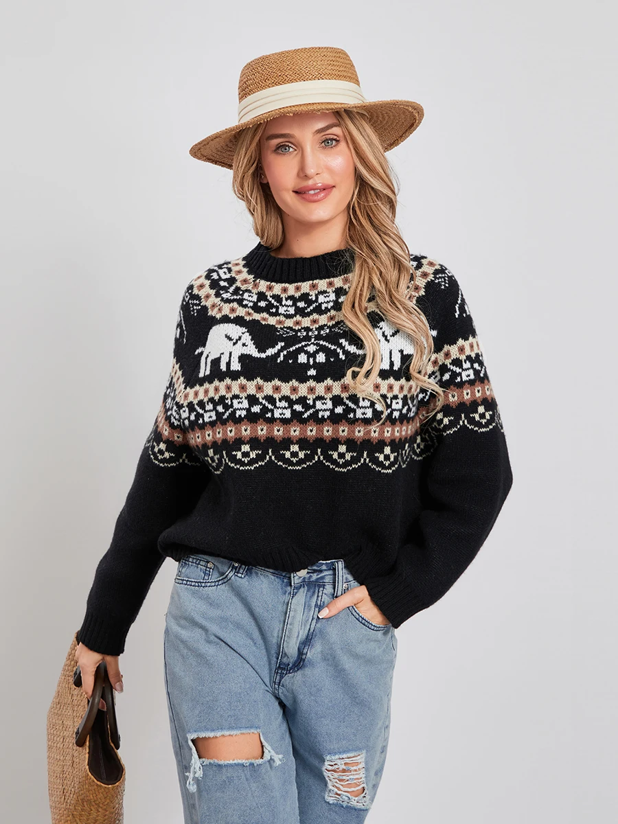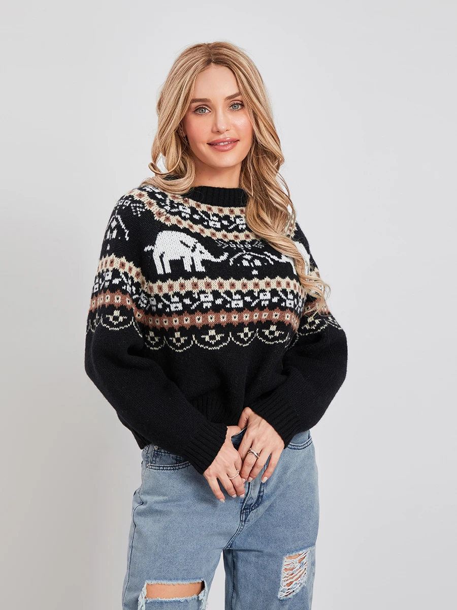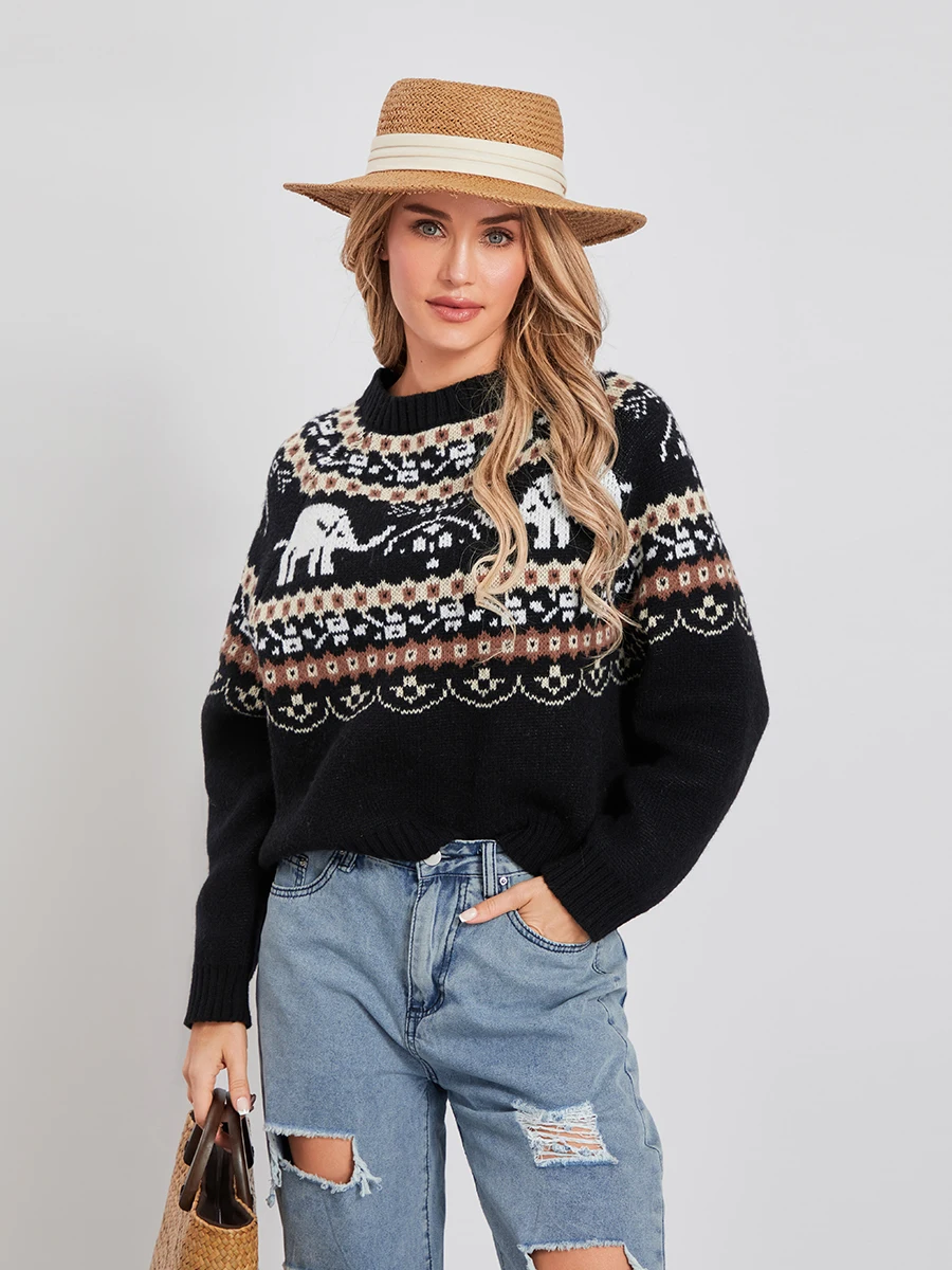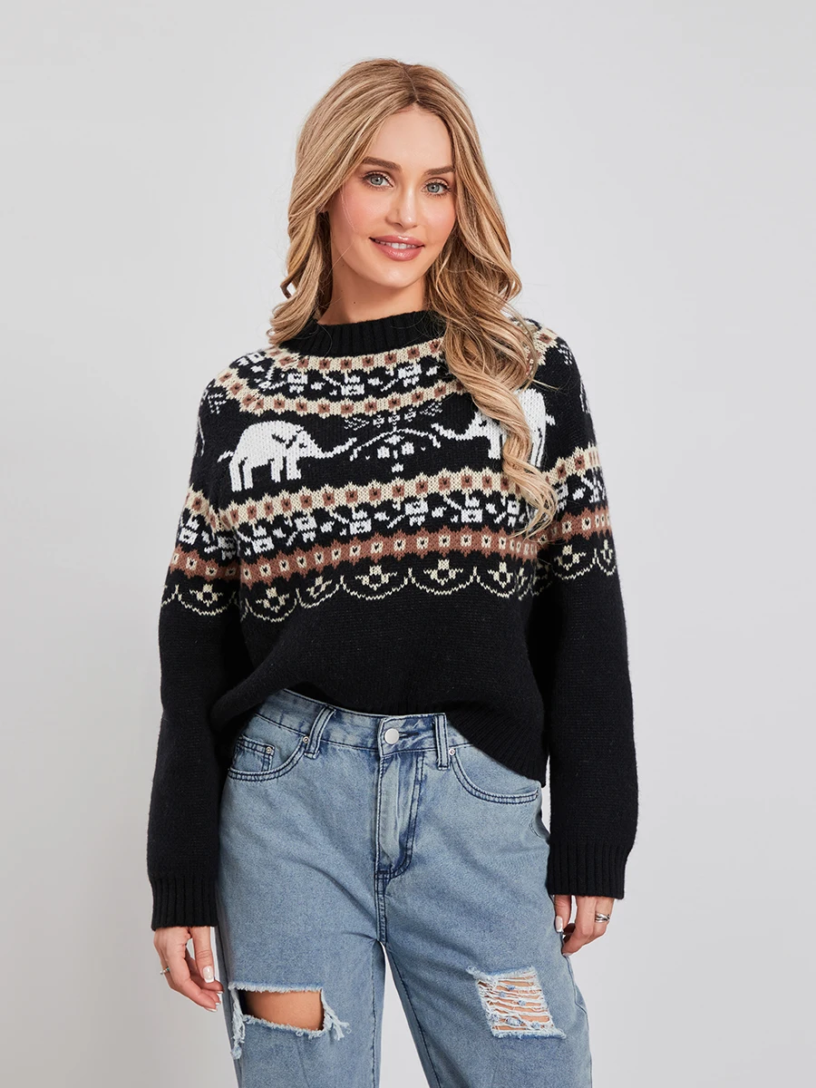 Women Knit Sweater Long Sleeve Crew Neck Elephant Pullover Warm Sweater for Fall WinterIf there is one thing to add to your wardrobe in time for fall or winter, it is this sweater!