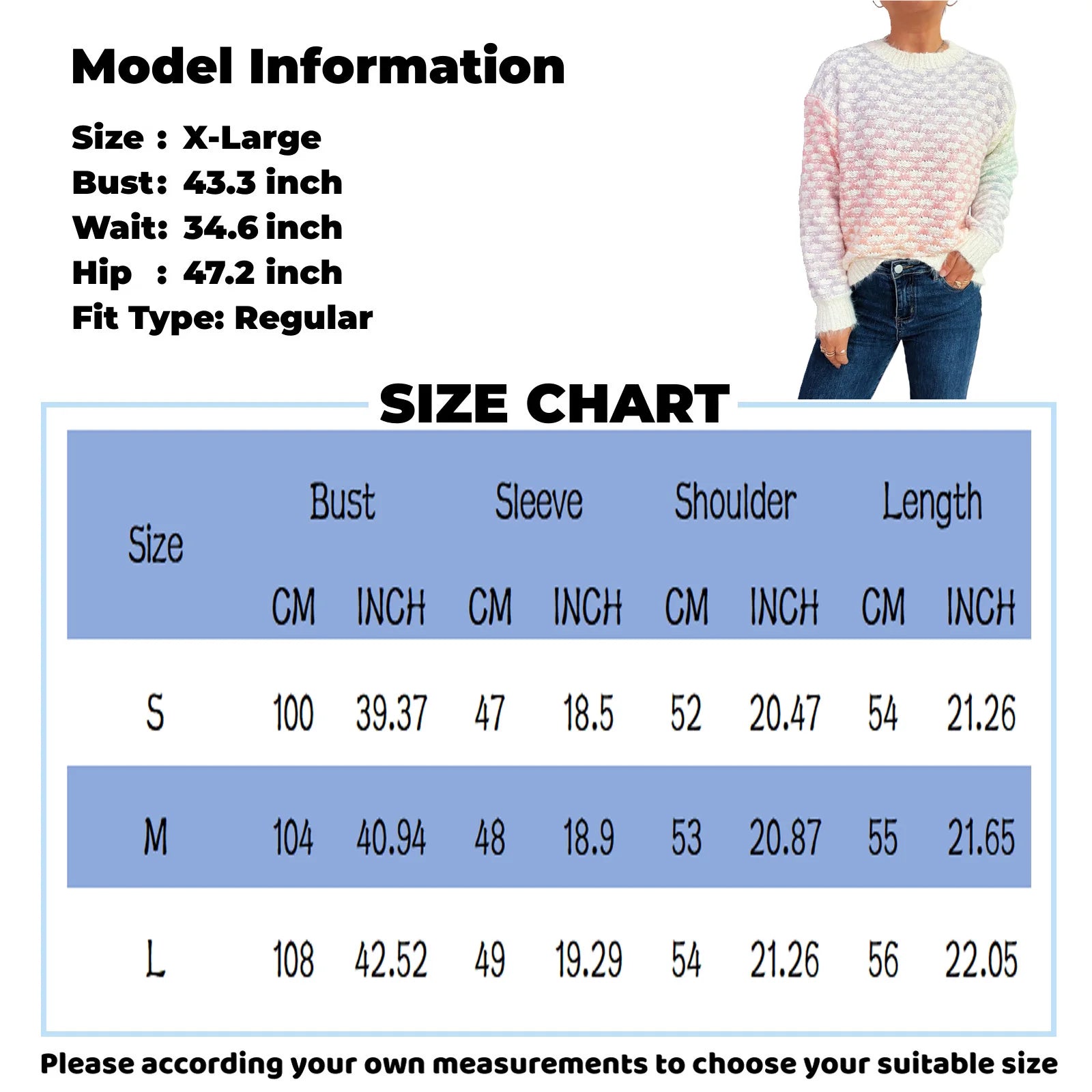 Women'S Casual Loose Pattern Gradient Color Long Sleeve Round Neck Pullover Knit Sweater Winter Clothes Woman Ropa De Mujer