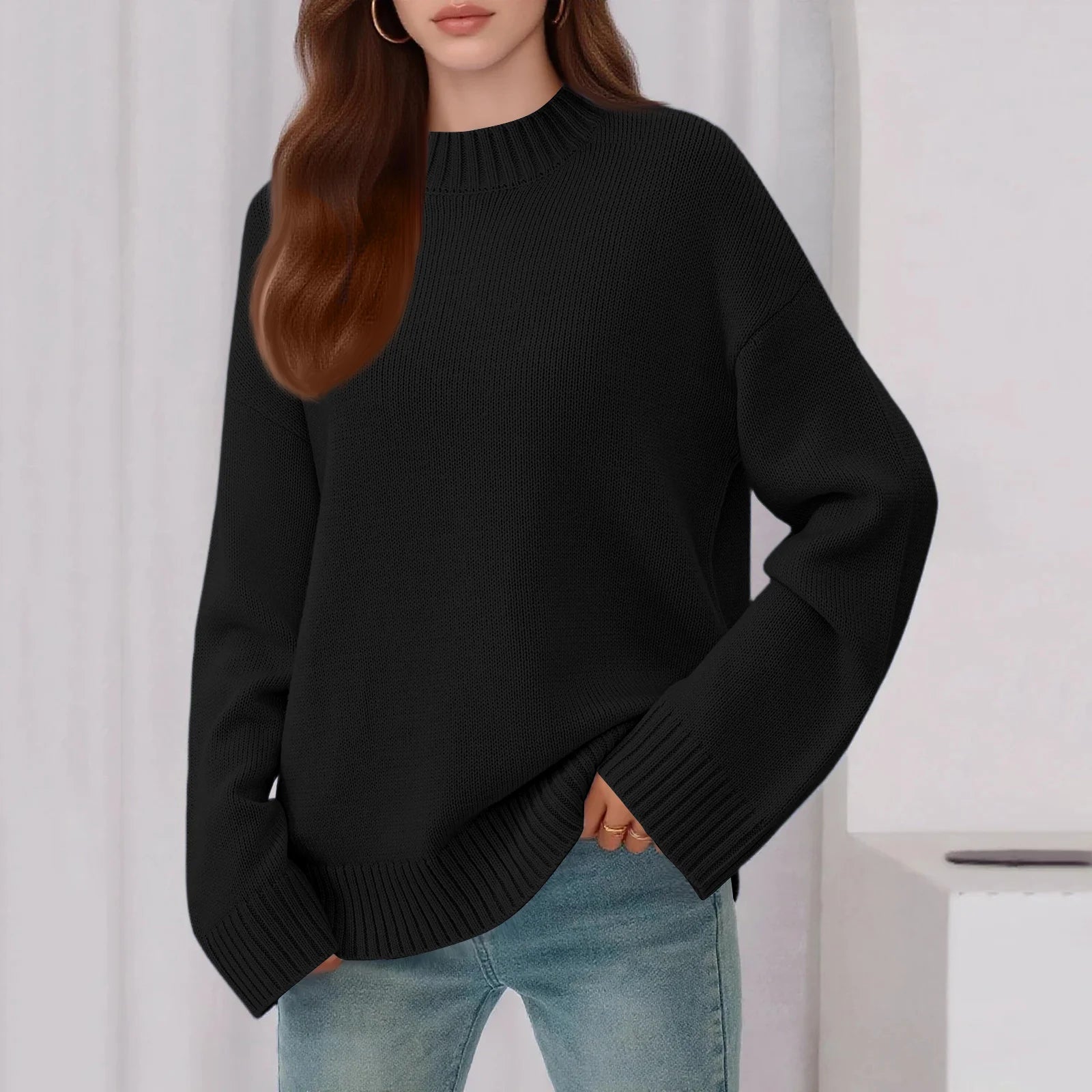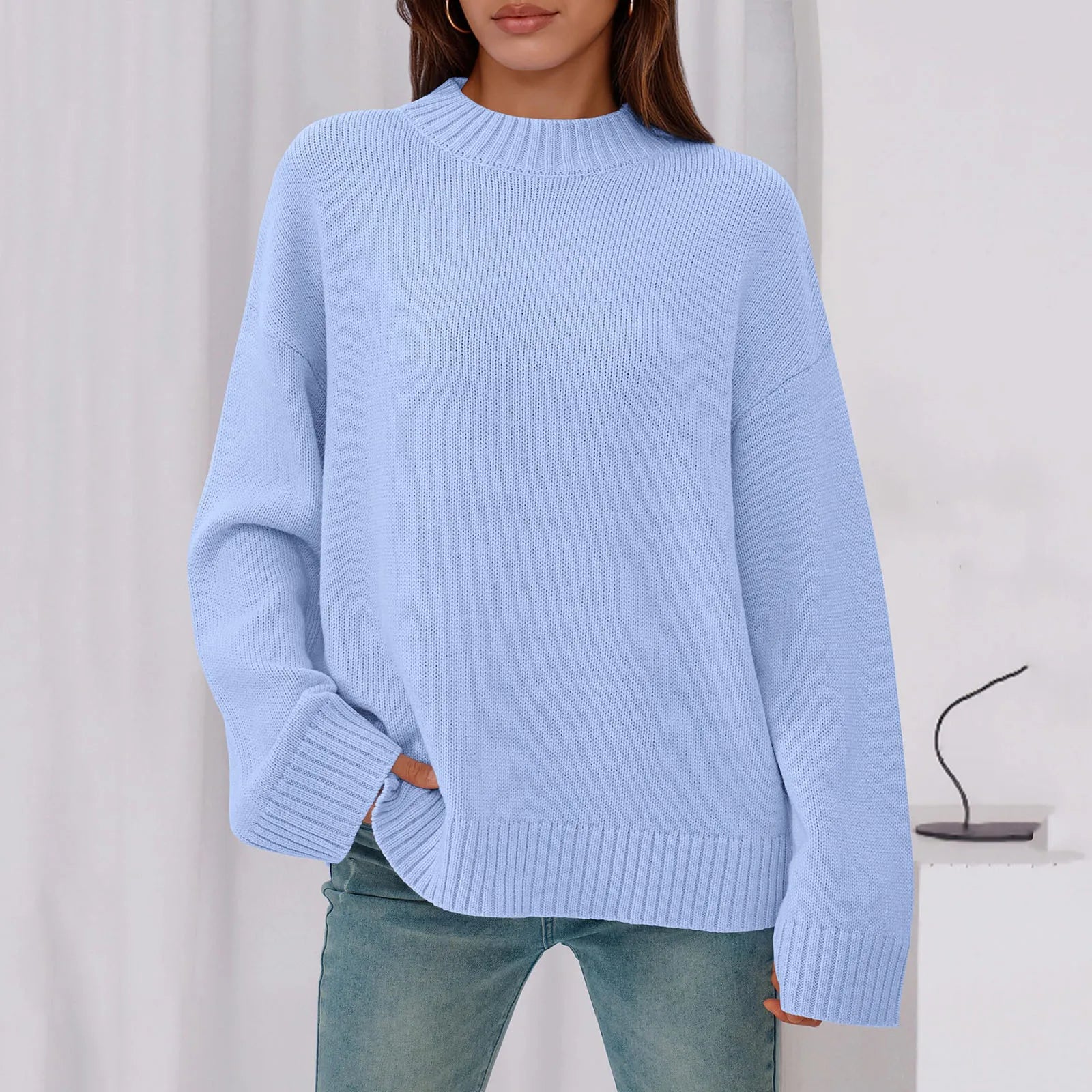 Womens Loose Round Neck Solid Color Bell Sleeve Long Sleeve Knitted Sweater Top Ropa De Mujer Sweater De Mujer Pull Femme