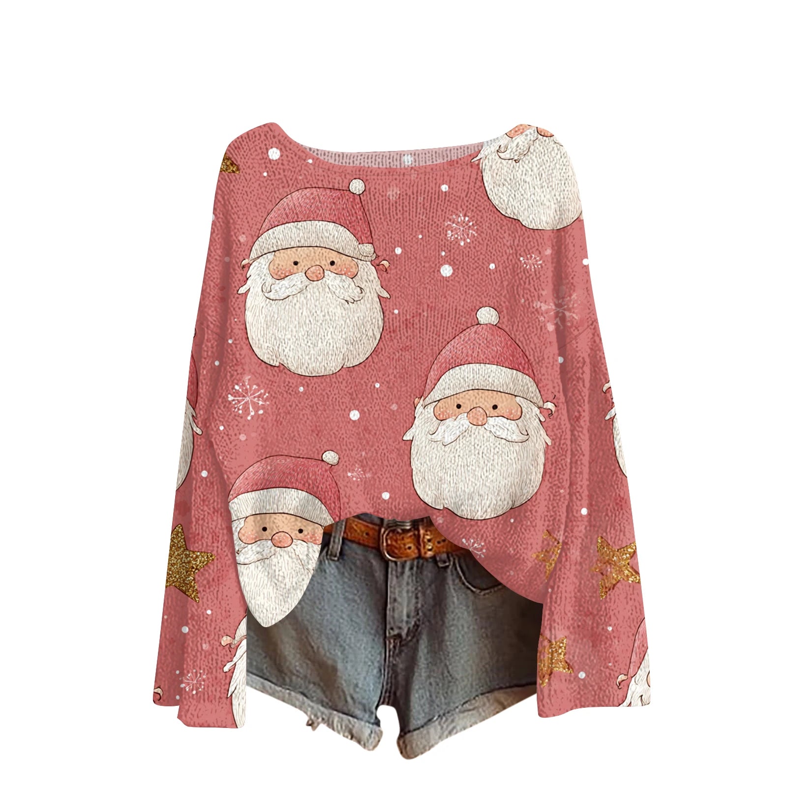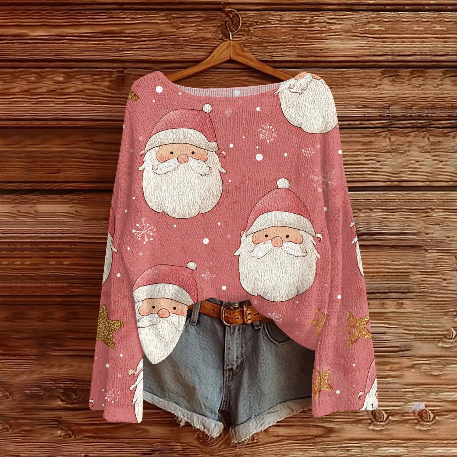 Women'S Round Neck Lightweight Sweater Casual Long Sleeve Christmas Print Knit Pullover Pulls Femmes Ropa De Mujer Woman Clothes