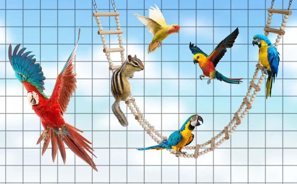 With two metal buckles on both ends, this ladder can be easily and conveniently installed anywhere and is the perfect birdcage accessory for your love bird.