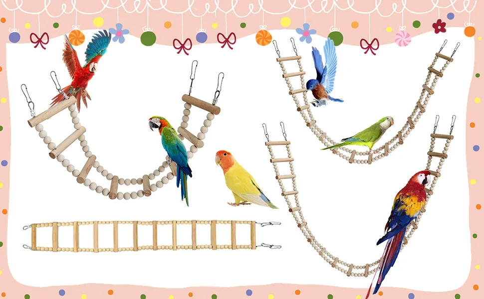 This bird ladder bridge contains stairs and round beads, which are made of natural wood, durable, bite-resistant, and very suitable for birds to play with.