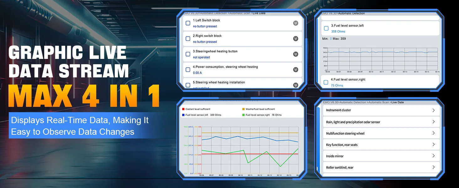 ✅ 4-in-1 Live Data & Recording:View up to 4 data streams in charts or text, record and review easily.