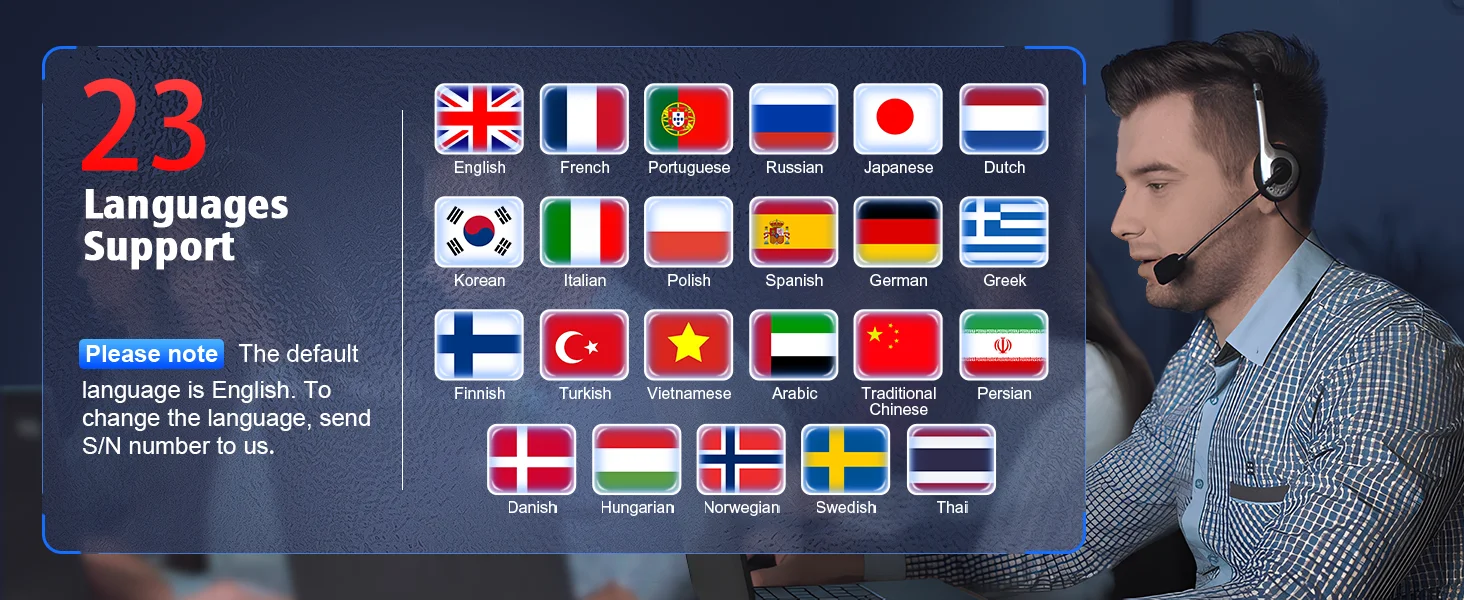 ✅ 23 Languages Supported:User-friendly multilingual interface.