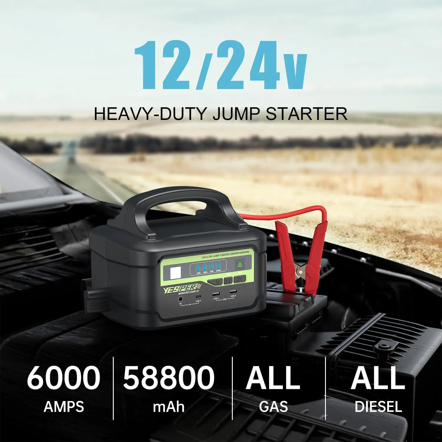 YESPER Car Jump Starter 6000A Peak, Portable 12V/24V Heavy Duty Truck Jumper Box, 58800mAh Battery Power Station