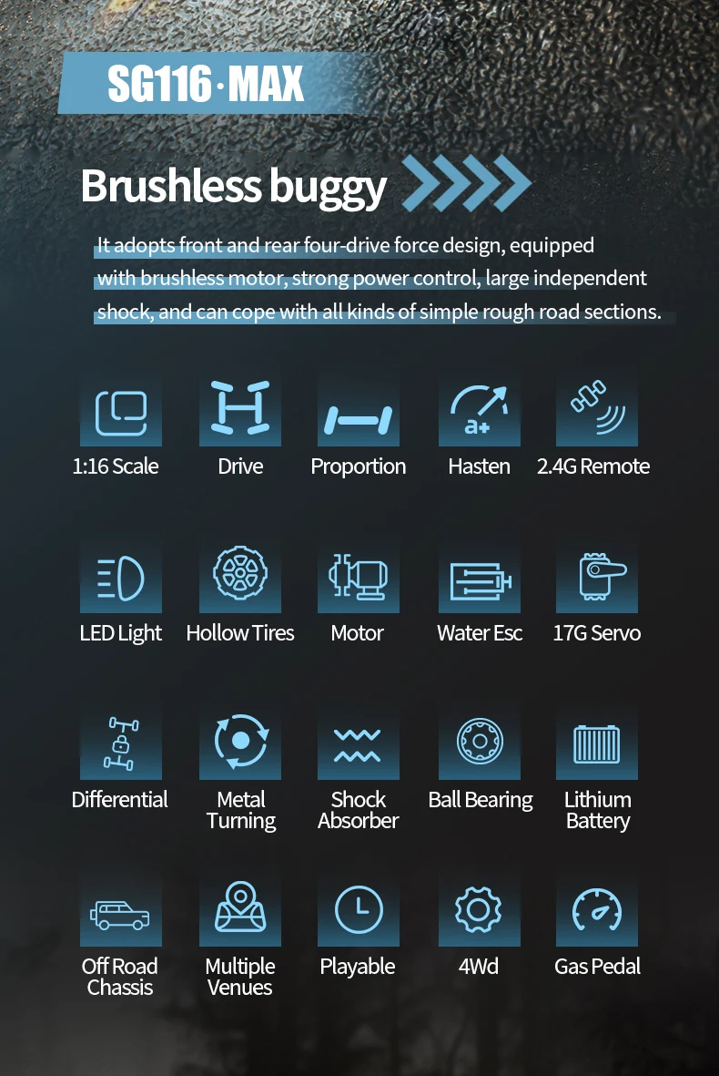 ZLL SG116 MAX 1:16 High Speed Drift Racing Car 80KM/H 4WD Off-Road Drift Remote Control Car SG316 Max Brushless Motor RC Car